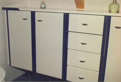 Ausführung als HängeschrankFarbe weiß und ultramarinblau