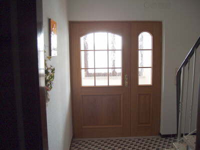 zweiflügelige Innentürmit Füllungen und Ornamentglas